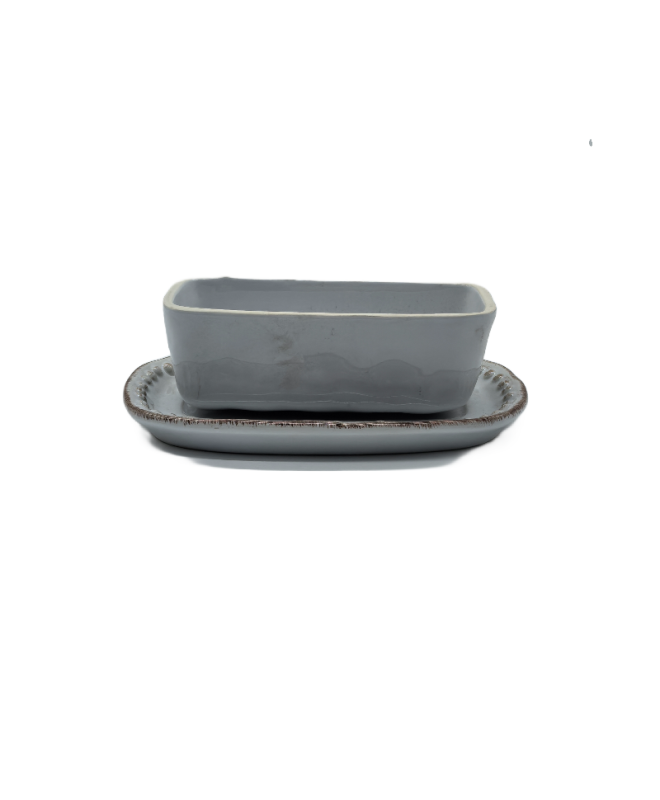 Gray Porcelain Butter Dish With Lid,Rectangular Covered Butter Keeper
