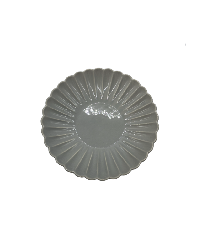 Chrysanthemum Shaped Gray Porcelain Dinner Plate,Round Platter For Dessert