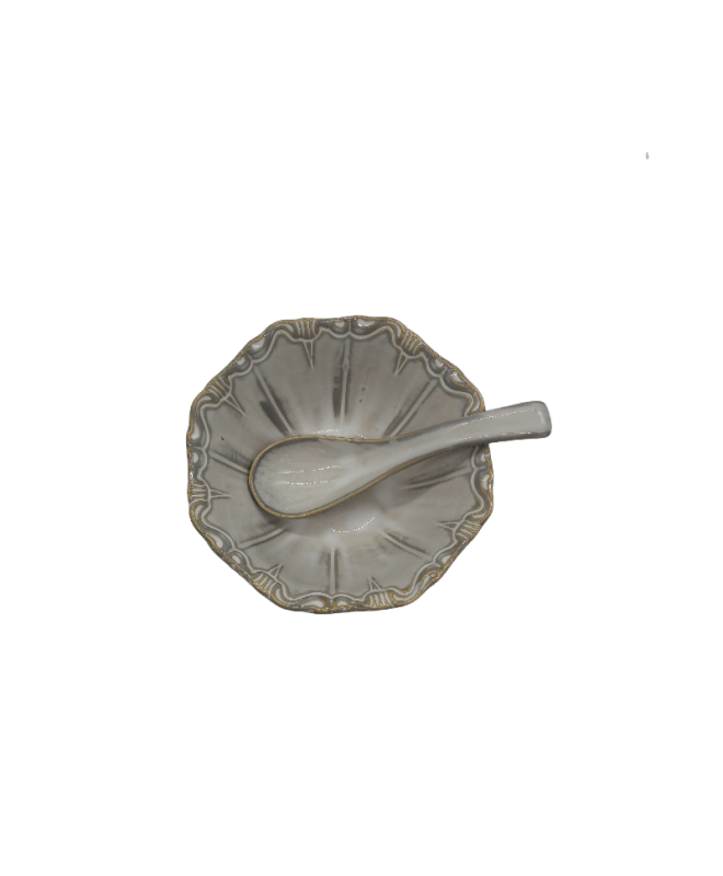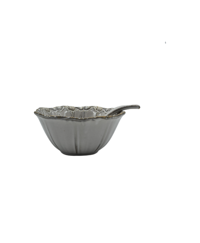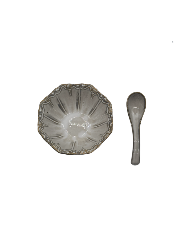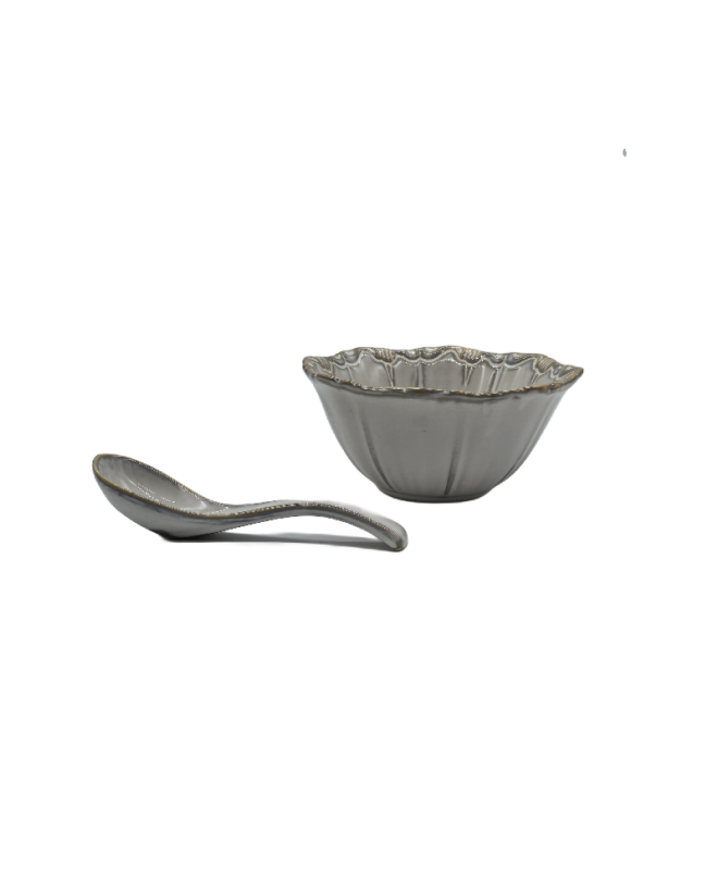 Gray Porcelain Bowl, Embossed Soup Bowl With Spoon
