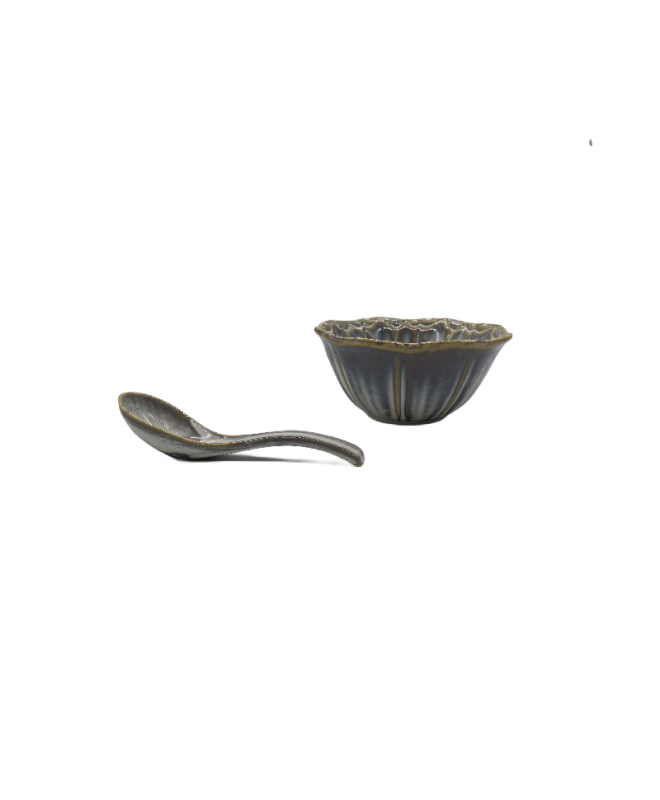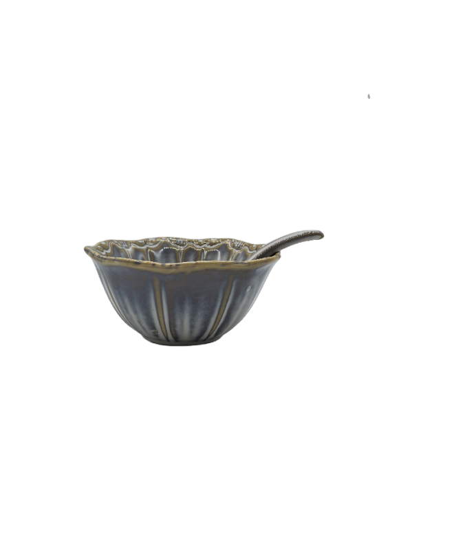 Blue Porcelain Bowl,Embossed Soup Bowl With Spoon